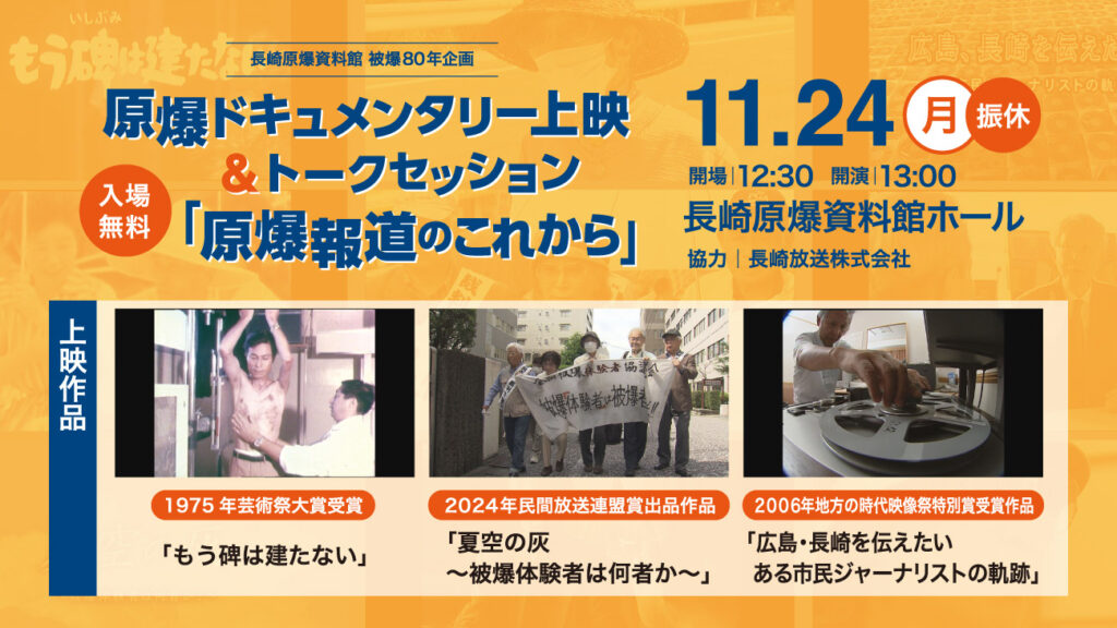 原爆をテーマにしたドキュメンタリーを特別上映すると同時に、新旧番組制作者と被爆者、若者のトークセッションを実施します。